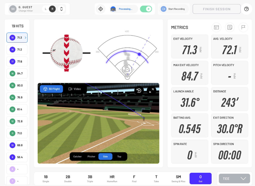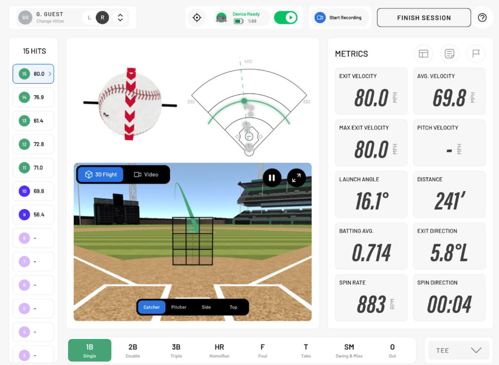 This is ideal for self-guided training sessions. You’ll have access to real-time data like exit velocity, launch angle, spin rate, and more, helping you fine-tune your performance during your rental time.